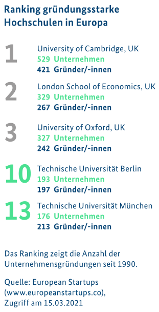 3 Schröder, M. (2019): Start-Up-Kultur – Wie Unis zur Keimzelle für Unternehmen werden. In: Handelsblatt, 27.05.2019. Verfügbar unter: www.handelsblatt.com/ unternehmen/mittelstand/hochschul-ausgruendungen-start-up-kultur-wieunis- zur-keimzelle-fuer-unternehmen-werden/24378324.html | Letzter Zugriff am 07.11.2020